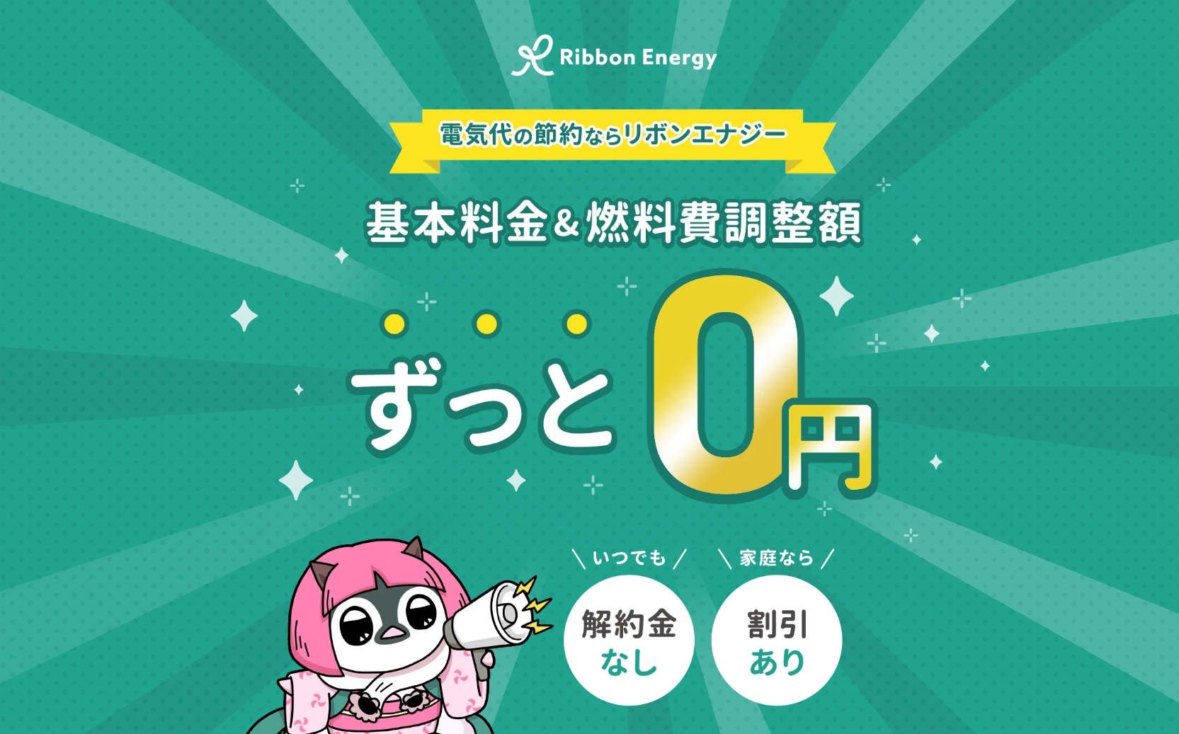 リボンエナジーの主な料金プランは「リボングリーン」。大きな特徴は、基本料金0円・燃料費調整額0円(※いずれも公式情報で要確認)で、電気代が